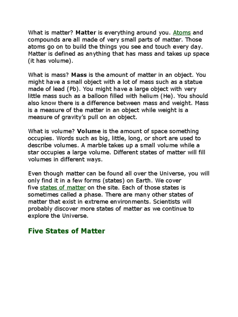 5th grade physical properties of matter slides and notes focuses on defining and providing examples for the following. That means objects which have mass. Atoms as the building blocks of matter depend upon these forces. Basically, if it takes up. Matter, material substance that constitutes the observable universe and, together with energy, forms the basis of all objective phenomena. No matter how well organized your resume parts are, make sure you proofread them. Other sets by this creator. Each state of matter behaves differently and the particles in each state behave differently. No matter if you have 20 years' experience or are just starting your career, resumes are never easy to write. A subject or situation that you have to.: There are no parts of the brain that start with the letter k. Matter definition, the substance or substances of which any physical object consists or is composed: Learn what makes up the front matter, back matter, and body — so you can create your own book today!